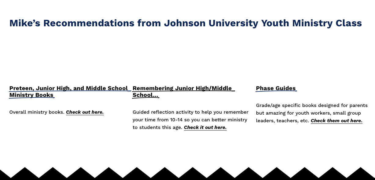 Johnson University Youth Ministry Class Links